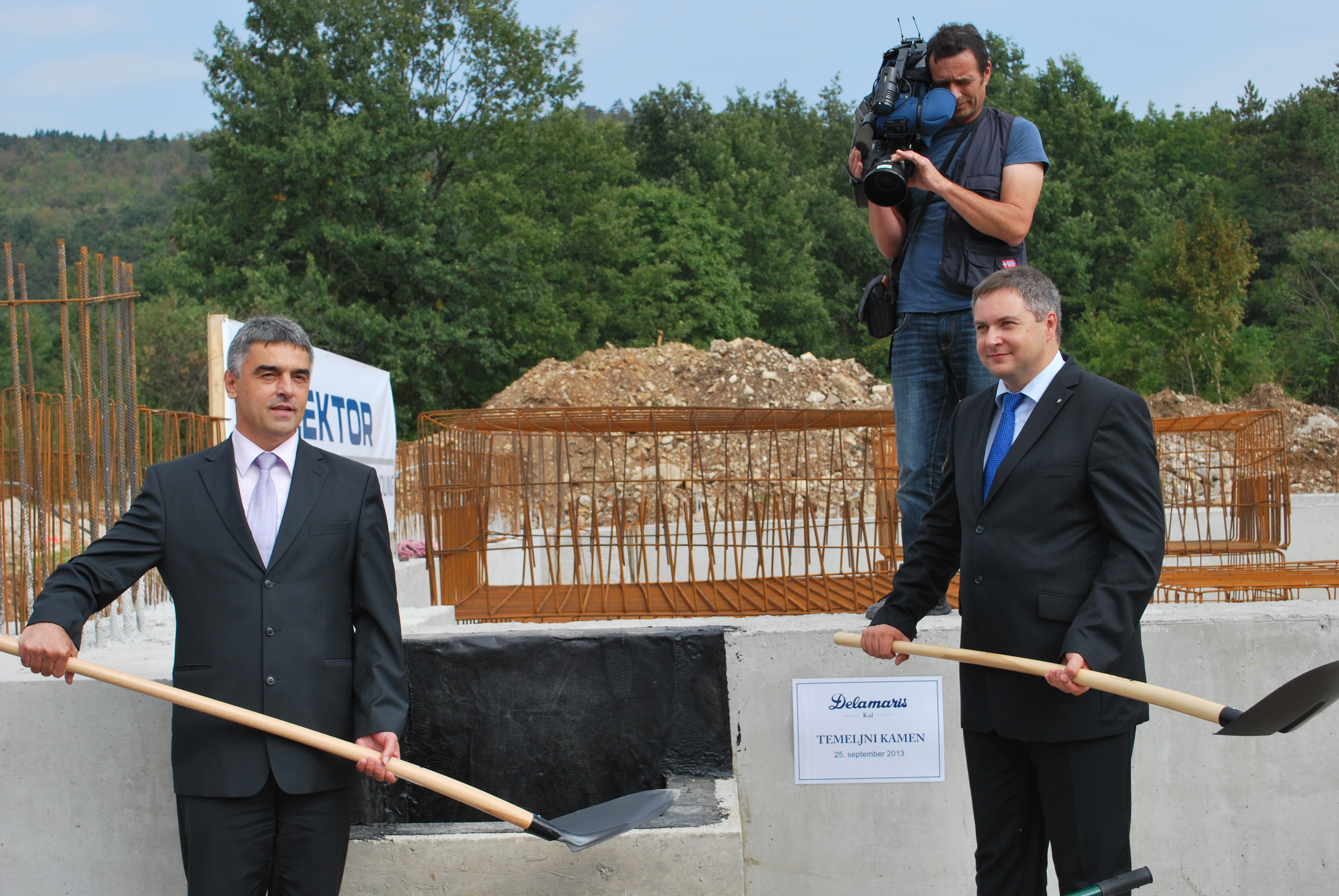 Na Kalu pri Pivki sta minister za kmetijstvo Dejan Židan in direktor družbe Delamaris Kal Aleksander Debevec slovesno vzidala temeljni kamen največje gospodarske investicije v občini Pivka in Notranjsko-kraški regiji v letošnjem letu. V prvi polovici prihodnjega leta bo na Kalu končana tovarna za predelavo rib in ribjih izdelkov Delamaris Kal. Prisluhni.