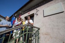 Ploščo z napisom V tej hiši se je 27. junija 1931 rodil zaslužni profesor Alojz Srebotnjak, slovenski skladatelj so odkrili soproga Dubravka Tomšič Srebotnjak, sin Martin Srebotnjak in župan Igor Marentič.