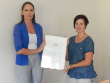 Priznanje ima v rokah vodja računovodstva Tamara Paternost Vir: Kovod Postojna