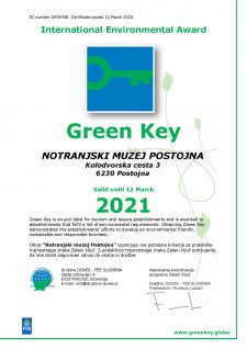 Notranjski muzej Postojna je dobil trajnostni znak, tako imenovani Green Key in Green Attraction. Z Zelenim ključem se je muzej na slovenskem, evropskem in globalnem trgu umestil kot okolju in družbi prijazni muzej.