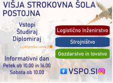 V petek in soboto se z možnostmi nadaljevanja šolanja ne bodo srečali le osnovnošolci, pač pa tudi prihodnji študentje. Višja strokovna šola Postojna bo predstavila tri programe.