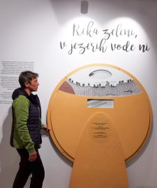 Predsednica društva Špela Koblar Habič v Ekomuzeju Pivških presihajočih jezer na demonstraciji pravilne saditve dreves v mestu oktobra 2023, ko so zasadili spominsko drevo ob 20-letnici društva v postojnskem parku.